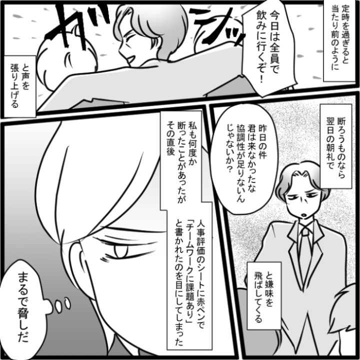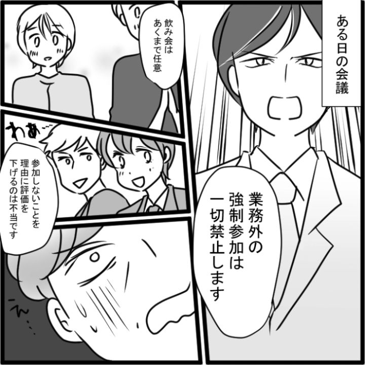 3. 「飲み会は強制!来ないやつは協調性がないから評価しない」飲み会も仕事の一部とする課長!毎日のように誘われて部署全員が困っていた→ある日ついに転機が訪れて・・・