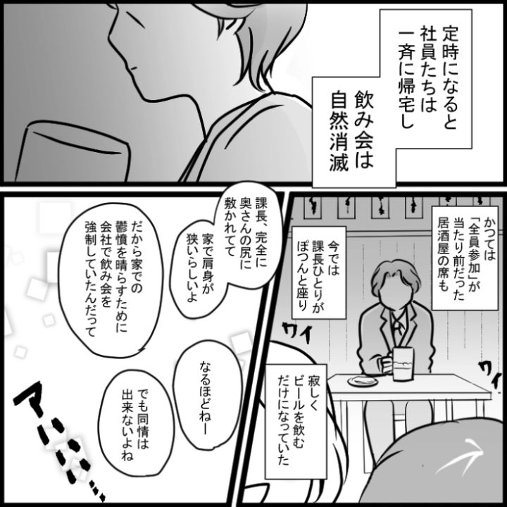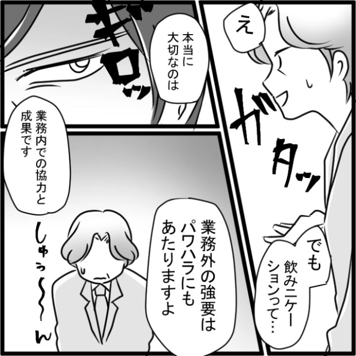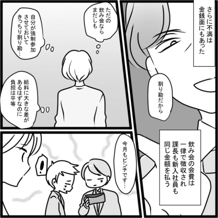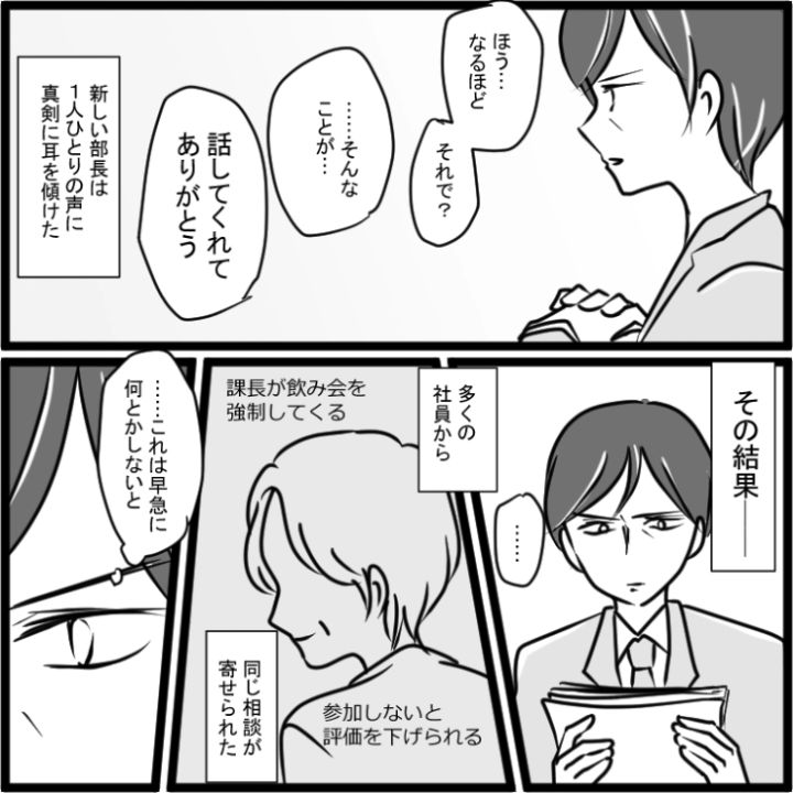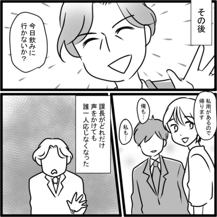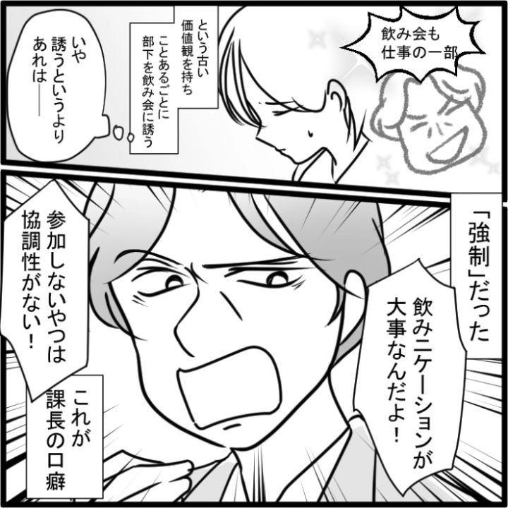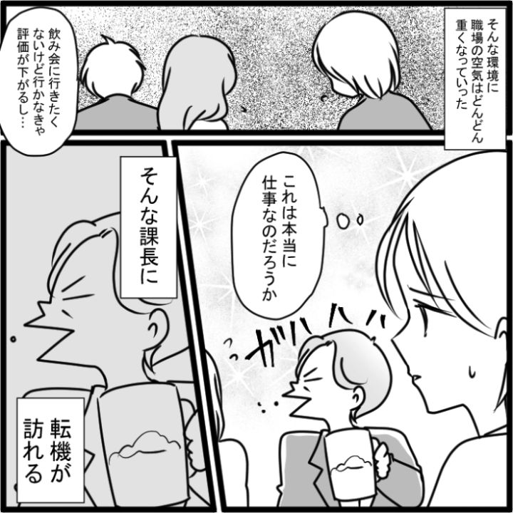 「飲み会は強制!来ないやつは協調性がないから評価しない」飲み会も仕事の一部とする課長!毎日のように誘われて部署全員が困っていた→ある日ついに転機が訪れて・・・