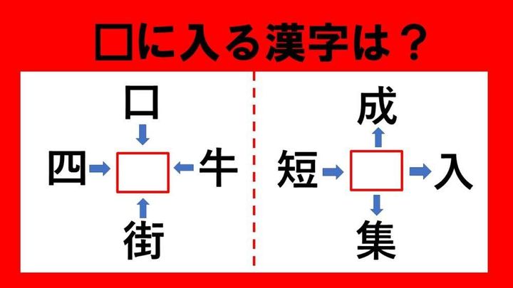 □に入る漢字はなんでしょう? 口□、四□、街□、牛□・・・!?