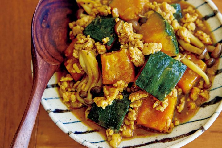 ほくほくのかぼちゃに、とろ~りそぼろあんがからむ〈秋の絶品おかず〉。みんなが大好きなカレー風味で仕上げた、子どもも大人も喜ぶやみつきのおいしさです。