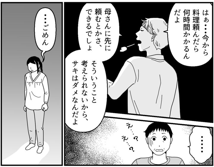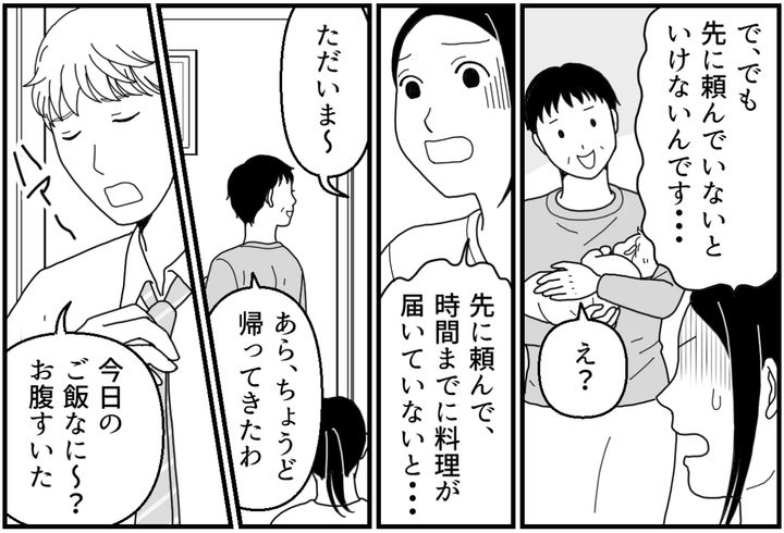 夫の生活ペースを守るために、きっちりご飯を用意しておくのは私の仕事。そのためにはもっと早い時間に出前を手配して、あらかじめ届けておいてもらう必要があったのです。案の定、帰宅した夫はチクチクと私のことを責めはじめました。