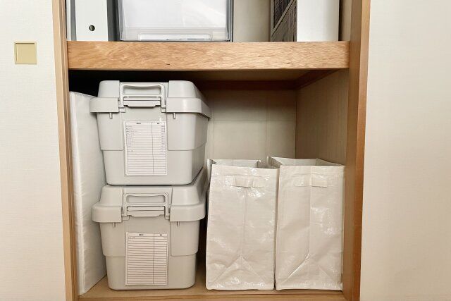 来客用ふとんを収納していたスペースには、それまで心もとなかった防災備蓄品をたっぷり収納できるようになり、安心感と満足感が得られています。