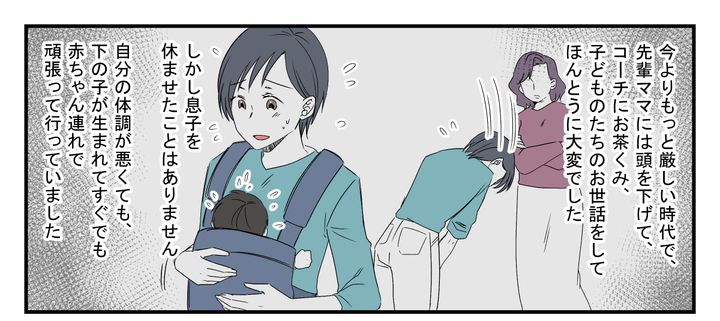 暑い夏も寒い冬も、毎日子どもたちを見守る必要がありました。当時は今よりずっと厳しい時代で、先輩ママに頭を下げたり、コーチにお茶を出したり、子どもたちのお世話をしたりと、ほんとうに大変でした。