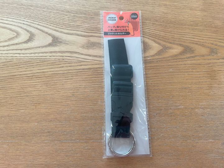 SNSで話題のセリアの「ジャケットホルダー」。バッグに取り付けて、ジャケットや帽子を巻き付けて固定できる便利アイテムです。わたしはよく子どもと公園に行った際、遊んでいる途中で「上着もって!」や「帽子いらない!」と言われてしまい、地味に手荷物になるのが嫌で困っていたんです。でも、セリアのジャケットホルダーがあればバッグの側面に固定できるので、そんなお悩みも速攻で解消できちゃう!わたしも数か月探してようやくゲットできたので、さっそく試してみましたよ♪