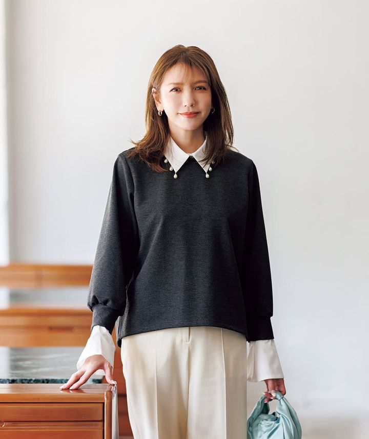 パール×白衿で上品映え。アクセいらずの"万能トップス"