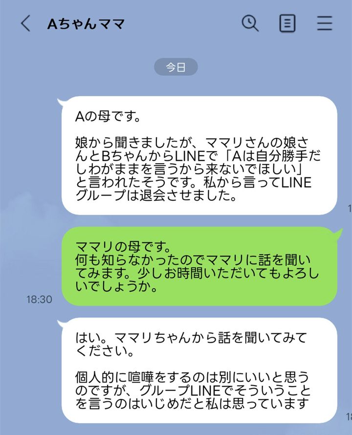 Aの自分勝手な言動が発端となり、投稿者さんの娘やBの「来ないでほしい」という言葉が出たのは明らかなよう。LINE上とはいえそう言われたら傷つくのも事実でしょう。