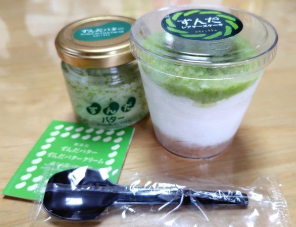 悩んだ末に、私がこの日購入したのは、「ずんだレアチーズケーキ」(420円/税別)と「ずんだバター」(620円/税別)、そして揚げたての「牛肉コロッケ」「かぼちゃコロッケ」(各150円/税別)です。