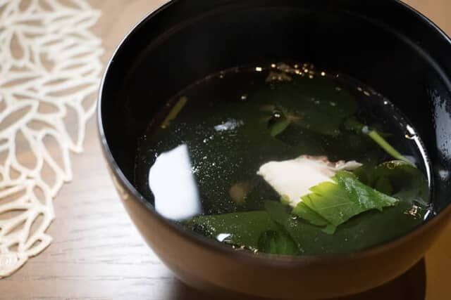 鯛の切り身が入ったお吸い物は優しい出汁の味わい。京料理の奥深さをあらためて実感する絶品でした。