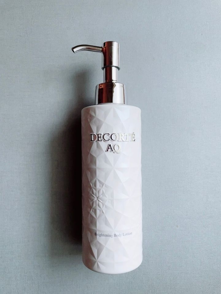 まずはコスメデコルテ AQのボディミルク。正直、価格を見て「顔の美容液じゃないか⁉︎」と一瞬ひるんだのですが(笑)、使ってみると納得でした。ビタミンC誘導体(美白有効成分)とトラネキサム酸(肌荒れ防止有効成分)を配合していて、日々のボディケアにケア以上の実感を与えてくれるます。夏の間にうっかり浴びてしまった紫外線によるくすみ感が気になる二の腕や首、デコルテに使うと、しっとりなめらかに伸び広がりながら、仕上がりはベタつかず心地いい。続けるほどに、肌のトーンが整って肌の透明感が上がっていくのを感じます。1ヶ月、集中的にボディの潤い&透明感対策として使用するのもオススメです。