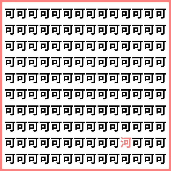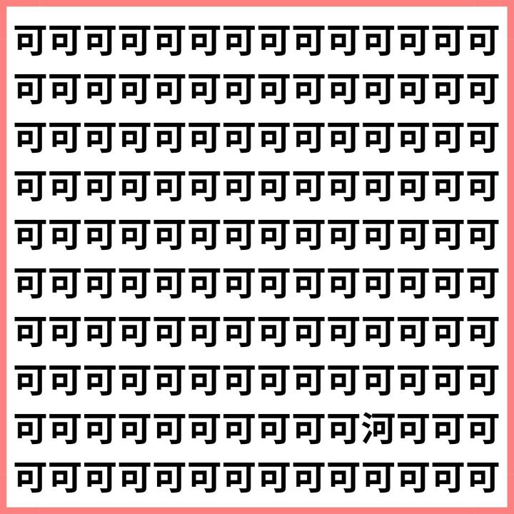たくさんの「可」の中に、1文字だけ違う漢字が混ざっています。