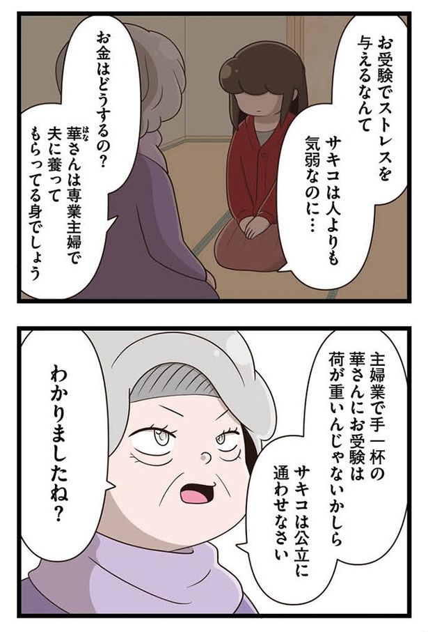2. 「主婦業で手一杯で、受験なんて荷が重いんじゃないかしら」孫の幼稚園受験を反対する義母/「お母さんの言うとおり」にしてきたのに②