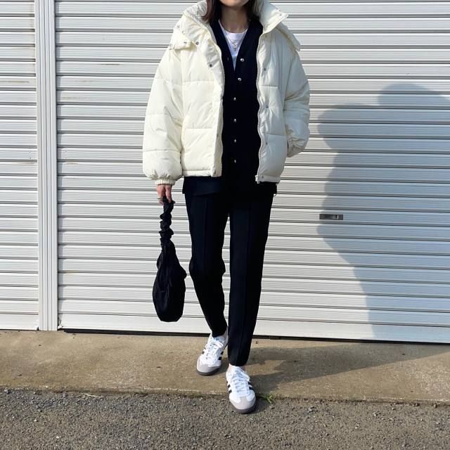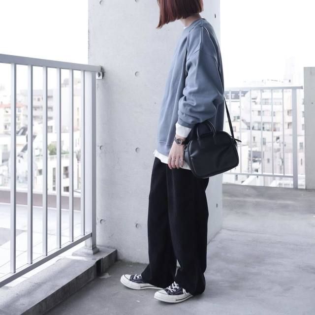 白のロンT(長袖Tシャツ)は秋冬の重ね着ファッションにぴったり。ゆるっとした「スウェット・ニット」の下に着て袖口と裾からチラ見せするとアクセントになり、こなれ感がグンとアップします。しかもトップスの重ね着がコーデに立体感を演出するメリットもアリ!