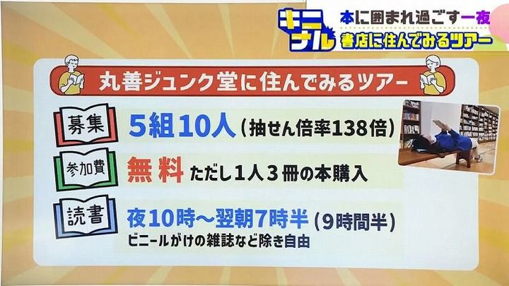3. 「やっちゃいけないことができて爽快」倍率は138倍!書店の床にゴロ寝もOKの夢のツアー