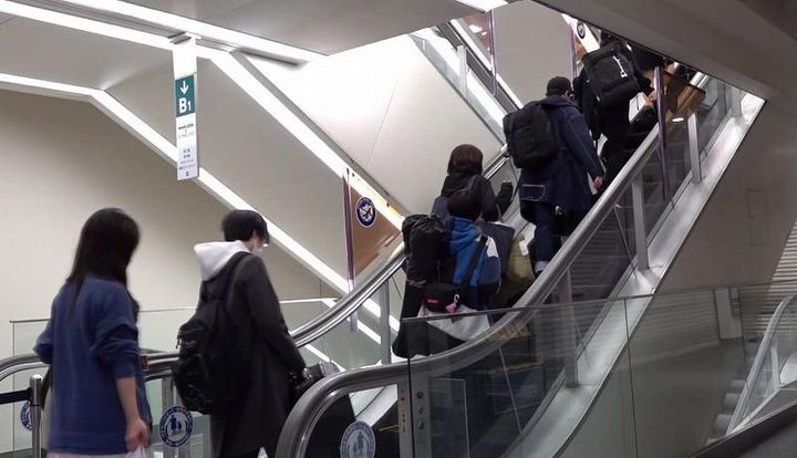 なぜか、止まったエスカレーターを歩いてのぼる人たちが…