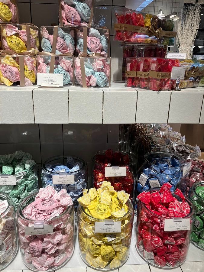 グッドルッキングな輸入菓子や焼き菓子の自分だけのセレクトが楽しめるキャンディバー。可愛いミニサイズのペーパーバッグやクリアバッグ、ボックスに詰めればギフトにもぴったり♡