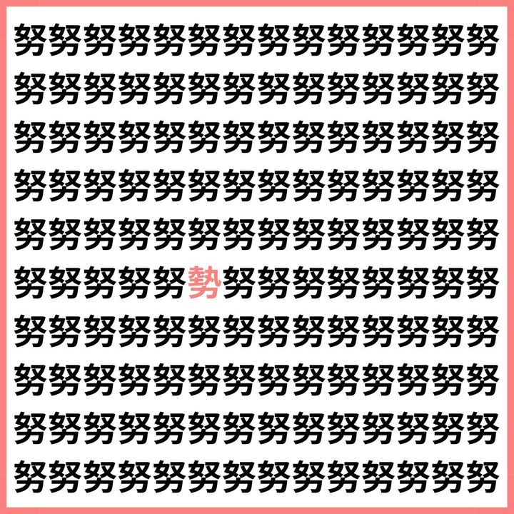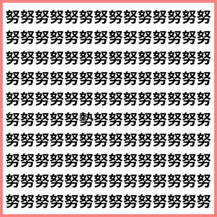 たくさんの「努」の中に、1文字だけ違う漢字が混ざっています。