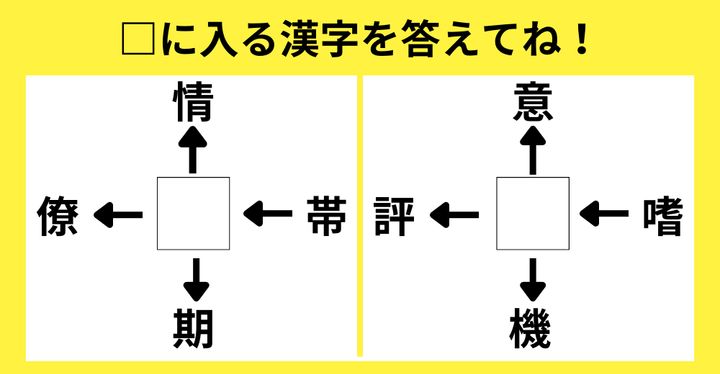 3. 【漢字パズル】□に入る漢字はなあに?初級問題です! □情、帯□、□期、□僚・・・!?