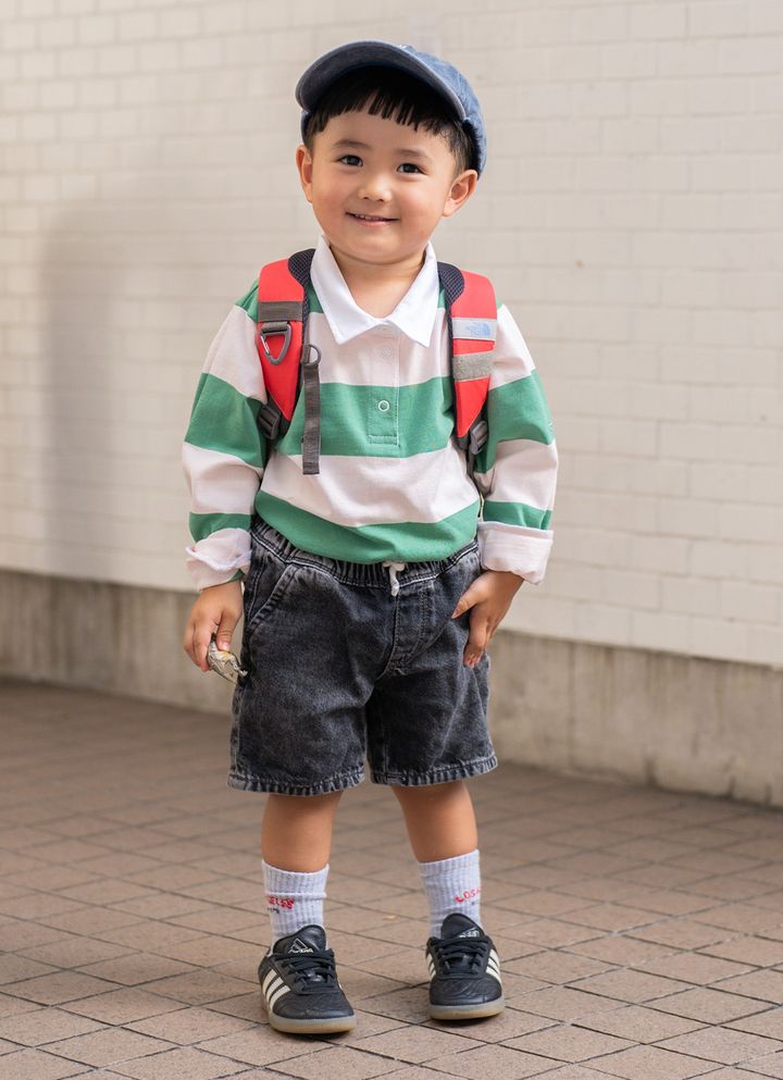 NAME:さくくん・2歳トレンドのラガーシャツに履き心地抜群のジョーツを合わせた、さくくんのカジュアルストリート。街歩きはもちろん、動きやすさもばっちりなので、公園遊びやちょっとしたアウトドアにもぴったり! ハットやリュックなど、小物使いでアクセントを効かせた、今すぐ真似したくなる着こなし。item▼