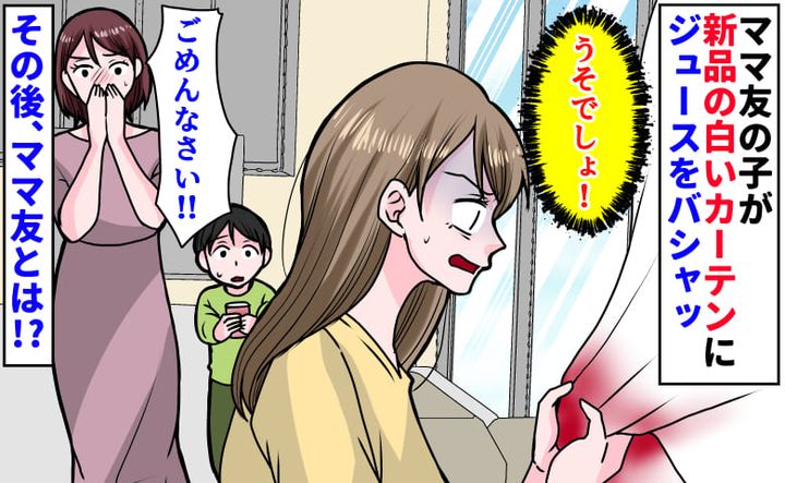 「新築なのに…!」ママ友の子が新品の白いカーテンにジュースをバシャッ!染み抜き代7000円…その後、ママ友とは