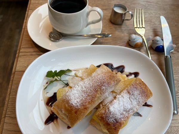 りんごカスタードパイは予想以上に大きく、自家製カスタードのあまさが程よくコーヒーに合う。