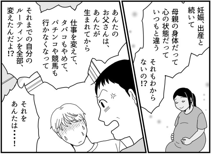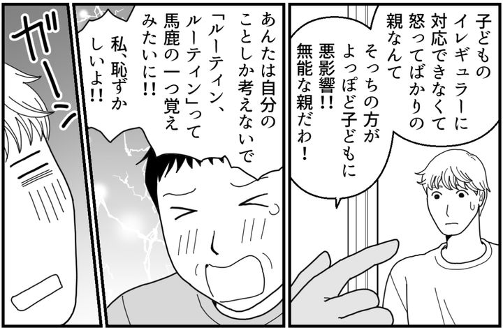 私はサキ。夫のタカシと結婚して娘のユリ(3才)がいます。先日息子のレントも生まれ、無事退院して数日が経ったところです。夫は自分の生活ルーティンが最優先で、それを乱されることをなにより嫌います。そのため産後のお手伝いはうちの母ではなく義母に来てもらうことになりました。そんななか体調が悪くて寝ていた私を、夫がネチネチと責めはじめます。見かねた義母が、ついに夫に指摘してくれました。「あんた……おかしいんじゃないの!?」
