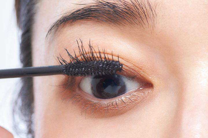 ブラシをしっかりとしごいて余分なマスカラ液を取りつつ、均一に行き渡らせます。まつ毛の根元にマスカラブラシを差し込み、液を塗ることでアイライン効果が。毛先はスッと抜いて。
