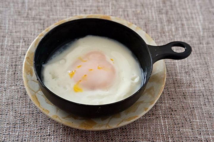加熱が終わってフタをとってみたら…あっ、きれいな目玉焼きになっています!