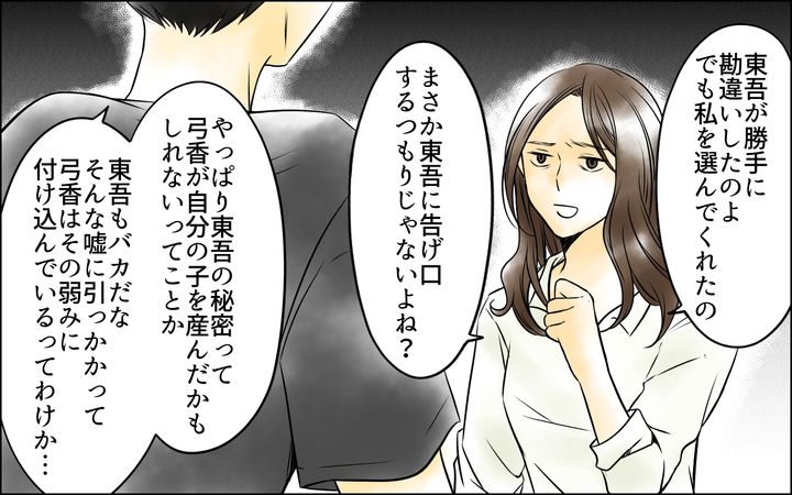 本命が他にもいるのに、弓香とも付き合っていた東吾。しかも弓香の生活費すら支援していたことが東吾の奥さんの調べによってわかっていました。そこまでなぜ東吾が弓香を大事にするのか? その理由は、奏を東吾と血がつながった子どもだと匂わせて、そのことをネタに東吾から支援を受けていたのです。
