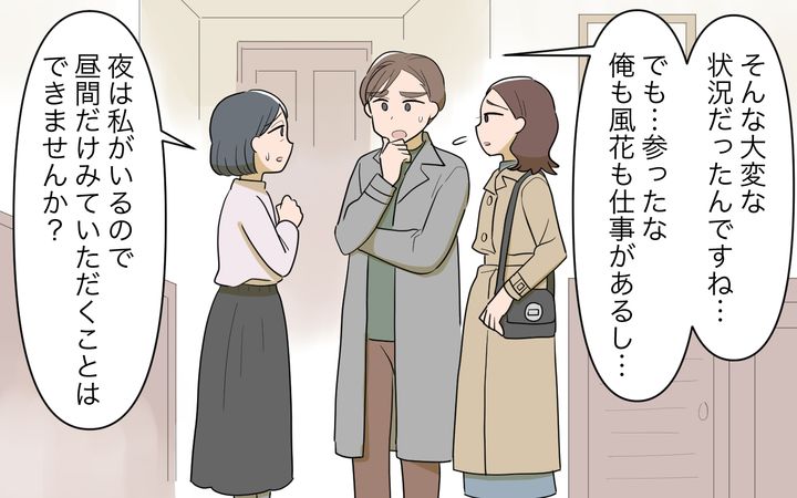 1年の交際の末、太一と結婚することになった風花は、太一の父親に挨拶することに。義父は太一が子どものときに離婚しているが、1年に一度は会っているという。しかし、いざ会ってみると義父は亭主関白で自己中心的なので風花は驚いてしまう。さらに最近再婚したそうで、顔合わせの場にも相手の冴子を同席させるのだった。そんな義父が、自分たち夫婦を結婚式に呼んでほしいと言い出し、さらには風花の実家に挨拶がないことを非難する電話を掛けたりするので、太一と風花は困ってしまう。しかし冴子が義父に話してくれた結果、問題は解決。ホッとしたふたりだったが、ある日、義父が倒れてしまい、冴子から義父の世話を頼まれてしまう。