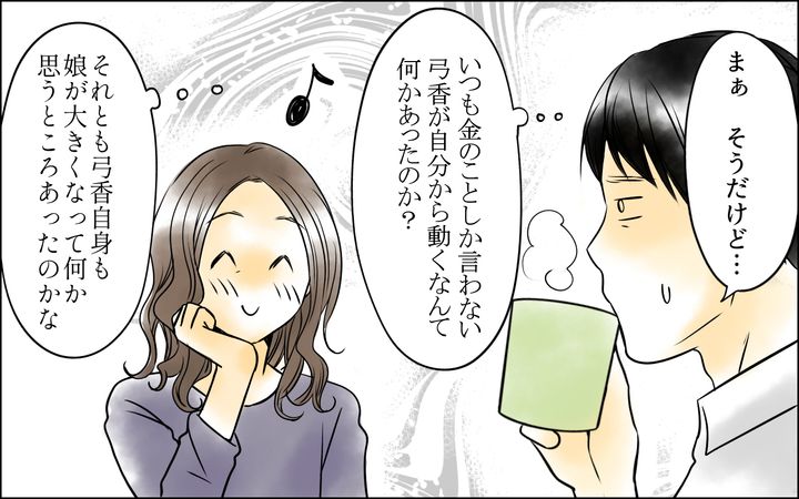 そして高校3年生になった娘の奏から学費を要求される。これまで話し合いを拒絶し続けた娘に征矢は「学費は義務じゃない」と突っぱねる。奏は奨学金を背負っても大学に行きたい決意が固いことを知った征矢は、学費援助を条件付きで約束。そして無事志望大学に入学した奏。しかしなぜか弓香も奏と一緒に家を出ると言い始めて…。
