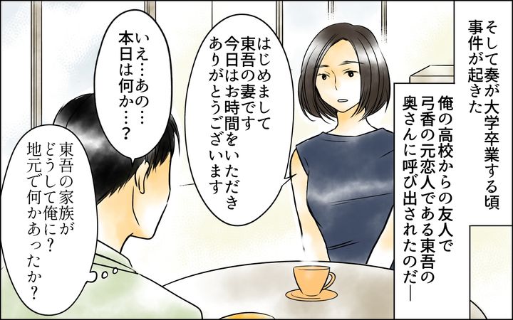 そんな日々を過ごすなかで事件が起こったのです。東吾の奥さんが出してきた証拠を見ると、弓香が遊び歩き始めた頃から関係があった模様。そして奏とのふたり暮らしの資金も、奏がバイトをしているのは知っていましたが、弓香の分は大半を東吾が出しているようでした。