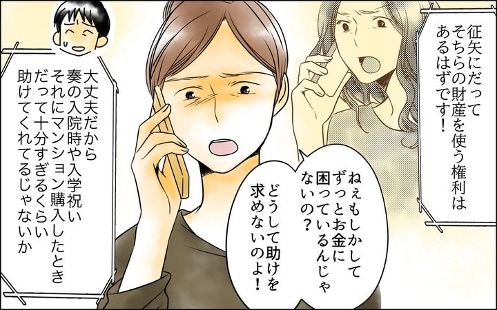 そして高校3年。当然のように弓香と奏から大学の学費を要求される。幼い頃に重病にかかった奏の看病のために出世コースから外れた征矢にとっては私立の学費、妻の奨学金返済、家のローン返済のために副業をする状態となる。そんな征矢の苦労を考えもせずに、親が出すのが当たり前という姿勢の奏に征矢は反発。そんなある日、征矢の姉から連絡があり、弓香が実家に奏の大学費用を出してほしいと電話してきたと聞き…。