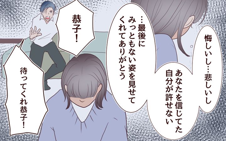 恭子は、何度手を伸ばしても振り払い、一度も振り向くことなく部屋を去っていきました。