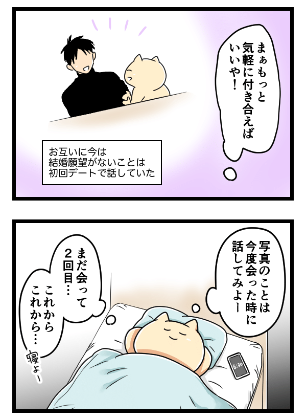 また、いろいろと違和感を覚えつつもスルーしてしまったのは、「どうせ結婚するわけじゃないからこれぐらい別にいっか」という気持ちがあったから、とのこと。さらにイケ杉さんには久々にときめいたので、「もしかしたら本気で好きになれるかも」「男性不信が治るかも!」と期待していたのもあるそうで…。