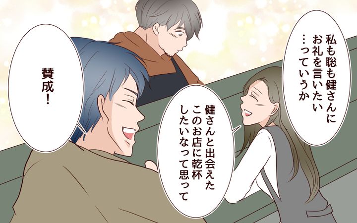3人で乾杯をしたとき、私は健さんと自分のことだけでなく聡の幸せも自然に願うことができ、とても幸せでした。