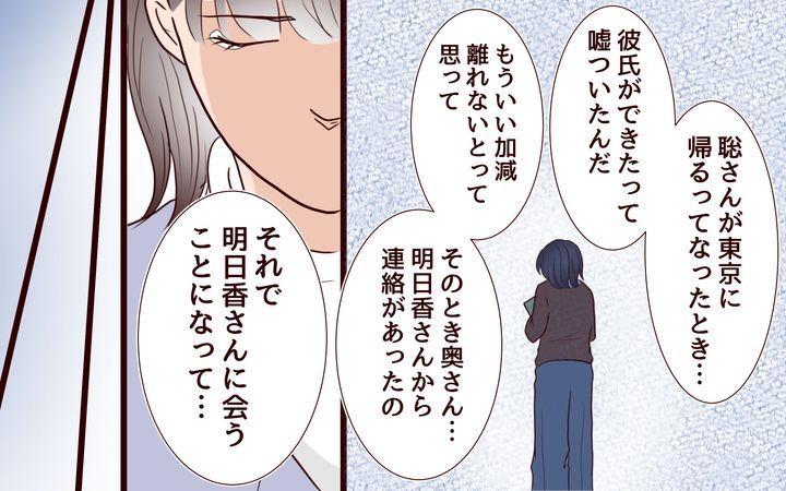 すでに夫婦関係が破綻しているふたりは、夏希のいない東京で大きな選択を迫られる。聡は「やり直したい」と告げるも、仮面を脱いだ明日香の答えは「離婚」の二文字だった。迷いを吹っ切り、恋人との人生を選ぼうとした聡だったが、恭子からも冷たい反応が返ってきて…。