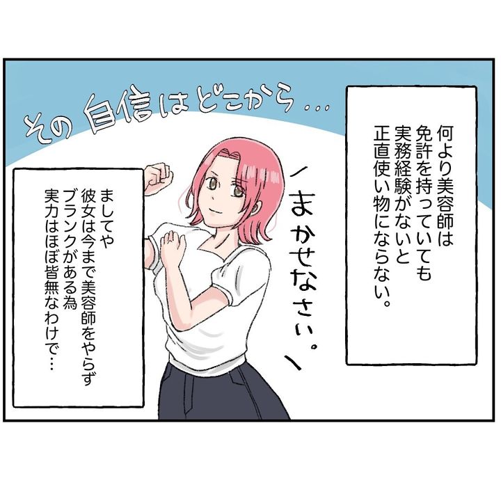 これは筆者が体験した、モンスター同僚との戦いの物語です。美容師歴8年の主人公はカラー専門店に入社。そこで出会ったのは同い年だけど美容師歴ゼロの「えいこ」でした。最初は同い年ということもあり、仲良くしようと試みるも…。彼女はたびたび問題を起こすトラブルメーカーだったのです。お店を巻き込むほどのトラブルを頻発させるも、本人は全く反省する様子もなし。追い込まれる主人公は果たしてどう彼女に立ち向かうのか?