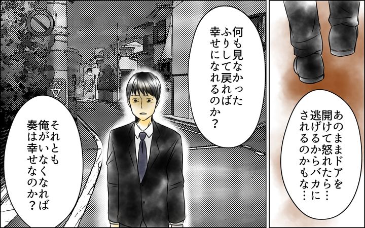 奏が楽しく学校生活を送る姿を楽しみに頑張ってきたはずが、邪険にされ反抗される日々。しかも家にいることが許されず、同じ時間を過ごすこともできなくなっていました。俺がいない家の中で、繰り広げられていた悪口に怒りと悲しみが襲ってきました。俺は一体何のために仕事をしているのだろう…。