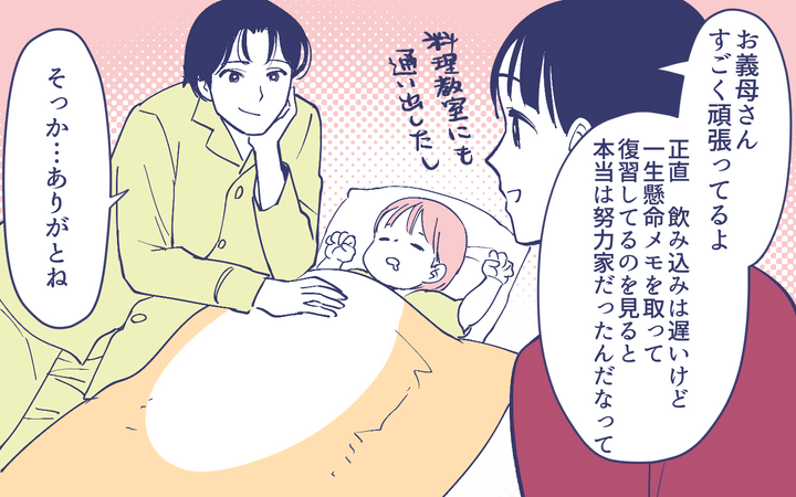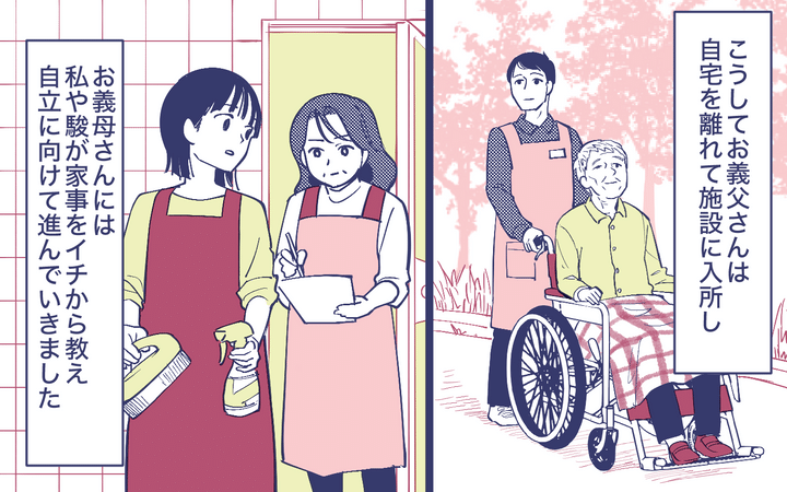 私と夫は、お義母さんの自立に向けて家事をイチから教えることにしました。ただし、お義父さんとの同居は諦めてもらうことに…。離れ離れで悲しいはずなのに、日々家事に奮闘するお義母さんを私は見直していました。独り立ちももうすぐ。そう思っていた矢先、お義母さんの心の糸が切れてしまったのです…。