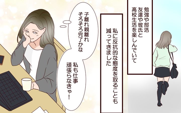 夏希は高校生活を楽しんでいるようでした。子離れはさびしいですが、これを機にますます仕事に打ち込もうと思い、少し頑張りすぎたのかもしれません。