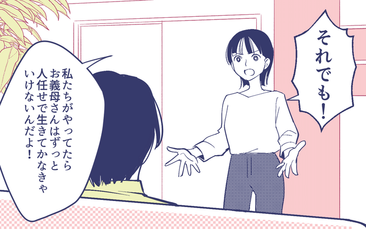 夫や義父に頼りっぱなしで、自分では何もしない義母。夫も義父も当たり前のように義母に優しく接するが、麻希の中には「なぜ義母にやらせないのか」とモヤモヤが募っていく。