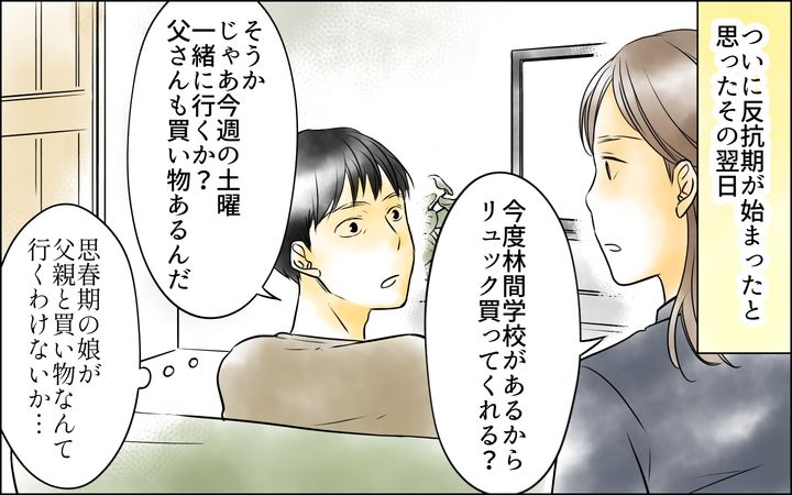 女の子は父親を毛嫌いするようになるとは聞いていましたが、ここまでとは思ってなくて…。正直奏の言葉が毎回グサグサと突き刺さり、消沈する毎日でした。