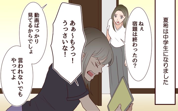 中学生になった夏希は、自分の部屋で過ごす時間が増えました。勉強をしているのかと思えば、動画を見ていたり、お友だちとおしゃべりをしていたり。