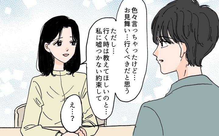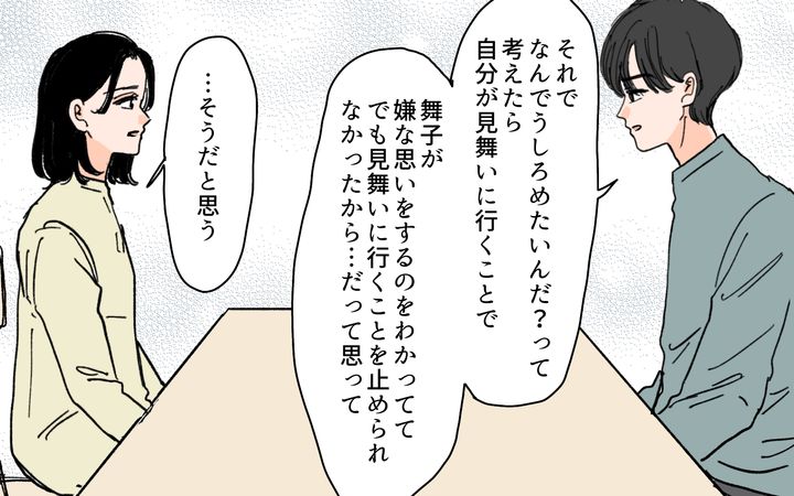 恵一は、自分がお見舞いに行くことで舞子が嫌な思いをするのはわかっていたものの、結果的に葉月に会うことを止められなかったからだと打ち明けた。その上で、もう嘘はつかないし、お見舞いにも行かないと話すと、舞子が提案があると言い出し…。