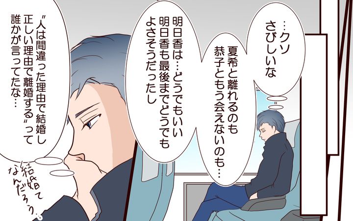 明日香に転勤の話をすると、思っていたとおりの答えが返ってきました。大切なのは、夏希のことだけ。お互い、もうどうでもいい関係なのだと痛感しました。