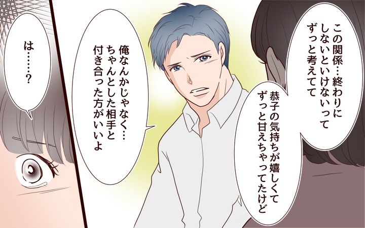 いつかは終わりにしないといけないこの関係。別れるなら今しかない。恭子にはもっとちゃんとした男性と、胸を張って付き合ってもらいたい。