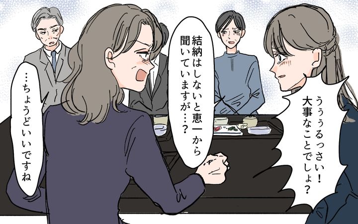 恵一が15年ぶりに再会した葉月は、大学時代から付き合っていた8歳年上の元カノだった。当時、自信がなかった恵一をそばで励まし、応援してくれた葉月。就職が決まると同時に結婚を決意した恵一だったが、両家の顔合わせの際に、葉月の母親の失言が原因でトラブルになってしまった。