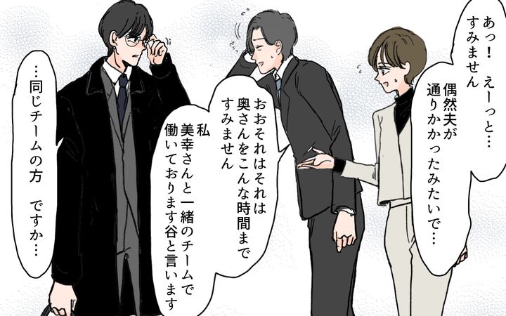 夫は私の上司のこともかなり怪しむ様子の態度で、私はハラハラしてしまいました。上司が何か勘づいてくれたのか、さっと名刺を出すと、夫は途端に安心したように笑顔になったのです。