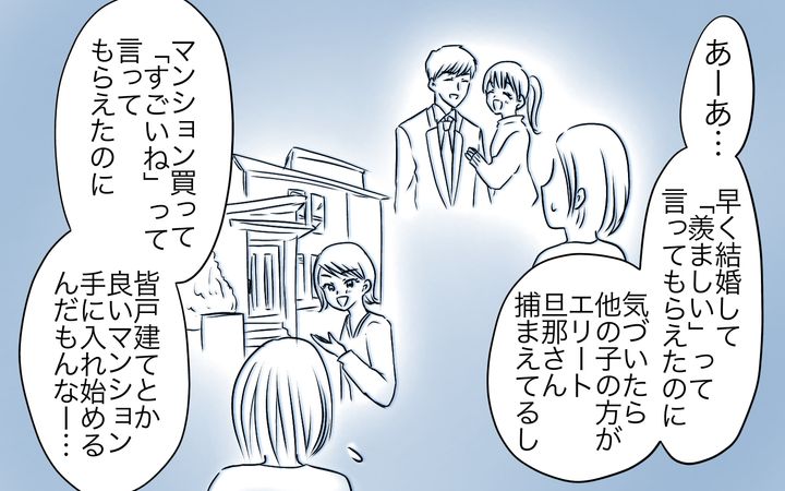 私は若くして結婚しました。周りからは「若い花嫁さんはキレイ」とか「早くに相手を見つけられるなんて羨ましい」とたくさん言ってもらえました。でも結婚した康は、大手企業でもなく給料が高いわけでもありません。気が付けば友人は、とても慎重に相手を選んでいて、大企業だったり、共働きで余裕ある生活を送っていました。