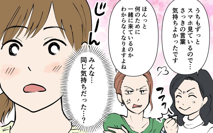 夫はいつもスマホに夢中で、肌身離さず持ち歩いていた。陣痛中でも出産中でもスマホを手放さない夫に、ほとほと呆れていた妻だったのだが、それは子どもが大きくなってきても同じ。家事育児も半端にしかやらず、スマホ三昧の夫に妻は何度も苦言を呈するのだけれど、夫は「俺は仕事をして疲れている」と怒るばかり。遊園地にせっかく行っても、子どもではなくスマホばかり見ている夫に、妻は「なんのために一緒にいるのか」と疑問を抱き始める。